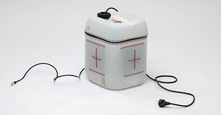 bidon dans lequel est reconditionné du vieux matériel informatique
